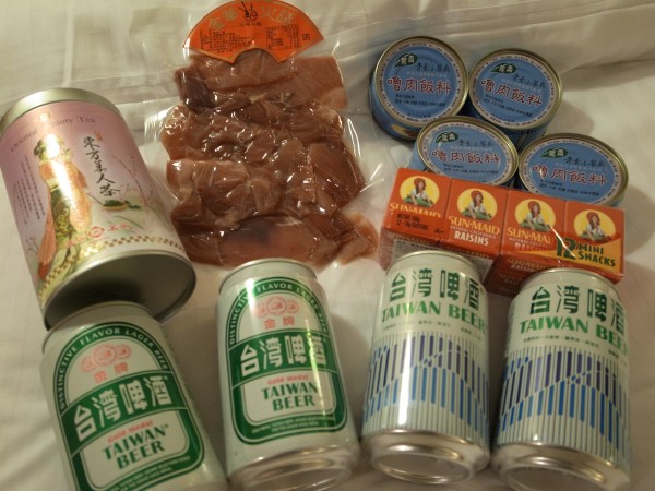 金華ハムはスープとかチャーハンに入れるとうまーvvでした。そのまま食べると塩辛いよ!魯肉飯の缶詰は実演販売のおばちゃんに「あ、ここのはおいしいのよ!」と唯一ほめられたチョイスだけあっておいしかったです。もっと買えば良かった。赤い箱は「アメリカから輸入したレーズンを台湾で輸入会社が箱詰めして売ってるもの」です。なんか箱がかわいいので買ってみてしまった。あとはビール。酒飲みのお土産に。