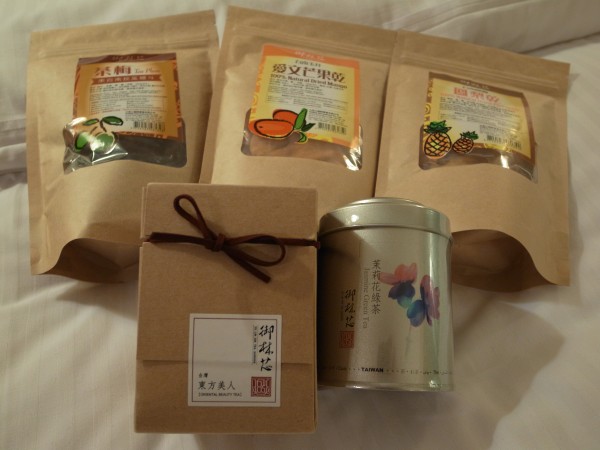 東方美人茶はリーフを袋で、ジャスミンティーは缶がかわいかったので缶入りのティーバッグを。まあお土産なんかにはいいんじゃないですかね。パッケージもセンスがよろしい。味も間違いなくおいしい部類ではあります。高いけどネ!!で、ドライマンゴーとドライパイナップルとお茶で香り付けした梅と。これらもおいしかったですー。一袋300円くらいだったか。まあ高いと言ってもお茶に比べれば知れてはいるんだが。