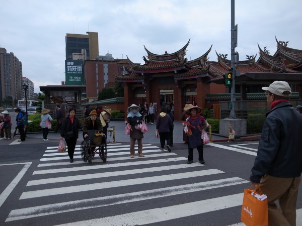 横断歩道の向こうに電飾なんかついちゃった日本人的感覚で言うと「え?いいのそれ?」的門が見えます。お参りへ向かう人、お供えのお花を売る人で辺りは賑わっています。中はさらにものすごい人で賑わっていそうです。