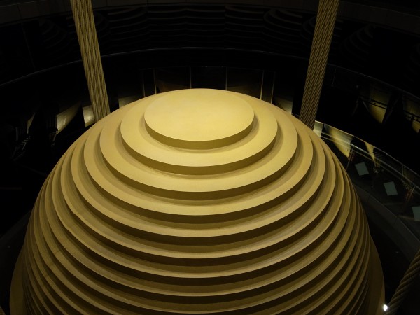 イヤこのあやしいながらもどことなくちょっとかわいいかもしれない……と言うマスコットキャラの人形が見どころなのではなく、コイツのモチーフとなったものなんです。これだけのデカいビル、地震が来たら大変です。と言うわけで台北101の中には振り子構造になった免震装置がありまして。この免震装置を間近で見られるのです。なんか、こういうのワクワクします。(工場見学とか大好きです。)