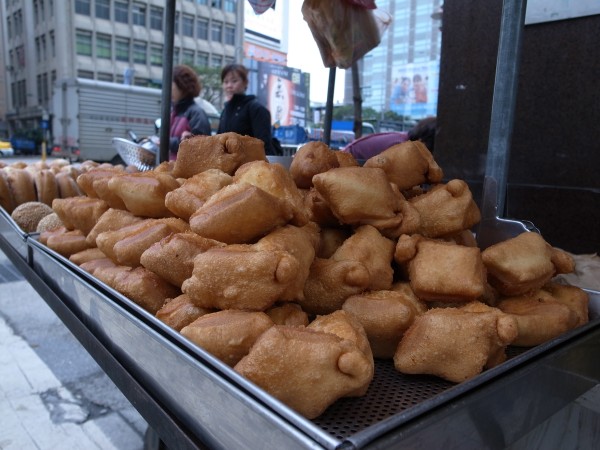 そんでブラブラ駅入り口へ向かっているとなんと揚げ菓子の屋台が!行きは無かったんですが。所持金はもはや数百円と言うレベルなのですがこれなら私にも買えます。台湾で食べた最後の食べ物があのマズイ朝食と言うのは避けたい。そしておなかが空いたというわけではないけれどなんだか満たされない気持ちと胃袋を満たすに甘味と言うのはいい選択ではありませんか。ここで最後においしいものを食べようではありませんか。