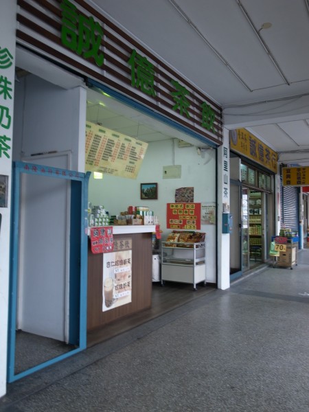 で他に、駅からホテルまでの短い道のりの中にお茶屋さんが数件あるのですが、その中に店先でタピオカミルクティーとかを売っているところがあったのです。街中でもっとしゃれた「ジューススタンド」とでも称したくなるようなお店を何軒も見ましたが、ここはホントはお茶っ葉売ってるけどコレもやってますーって感じの。これも何回か行き来するうちに目をつけていました。もう台湾元も要らないし、ピックアップの時間まで20分ほどありそうなので、ロビーでいただくとしてこれも買いましょう。