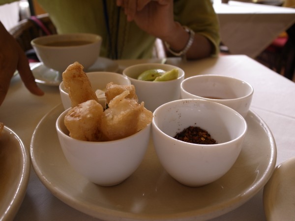 メシ食ったお店の名前は分かりました。『タマリンドカフェ』とな。キャッシャー横にパンフレットがあるのを取って来ていたようで出てきました。会社でお客さんを連れて行くので、たまにお呼ばれしたりするとガイドさんが言ってました。で、丁度行ったらガイドさんの会社のひとが何人かランチに来ていたのでした。まあこじゃれた部類のお店です。