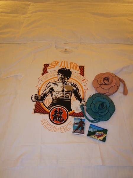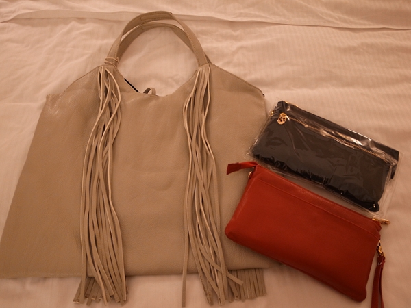 ぜんぶ本革でお値段がすっごい安くて!フリンジのついた大きめのトートが380HKDで、色違いで買っちゃったクラッチが220HKDだ!クラッチなんて、表にマグネットポケット、裏にジッパーポケット、内側にはそのまま財布として使えるようにカードポケットがいっぱいありつつみっつに仕切られているという優れもの!その上、ななめがけにできる長いチェーンまでついてんのー!いろんな色と、あとエナメル風とかヘビ革風とかあって相当迷ったけどスタンダードに赤と黒を。一個にはしぼれんかったとです……。