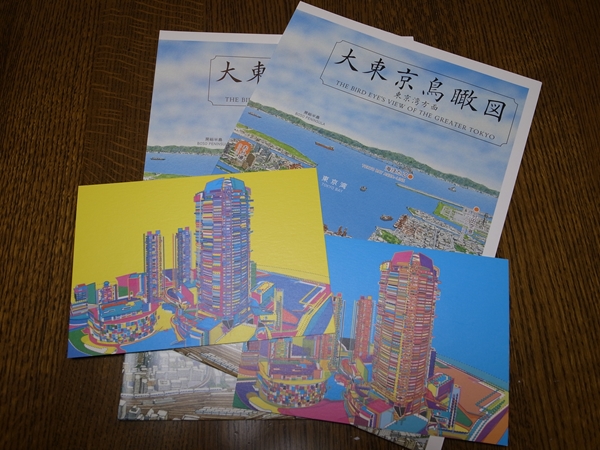森タワーの展望室内で良心市スタイルで販売されていた「大東京鳥瞰図」(森タワー限定)は、これもばーちゃんが地図見るの好きなのでついつい……ああ学生時代東京暮らしだったとーちゃんもよろこびそうだとふたつ……。私も見ましたが、東京の地理感の無いひとが見てふむふむするのに丁度いいかんじのものでした。一枚100円。